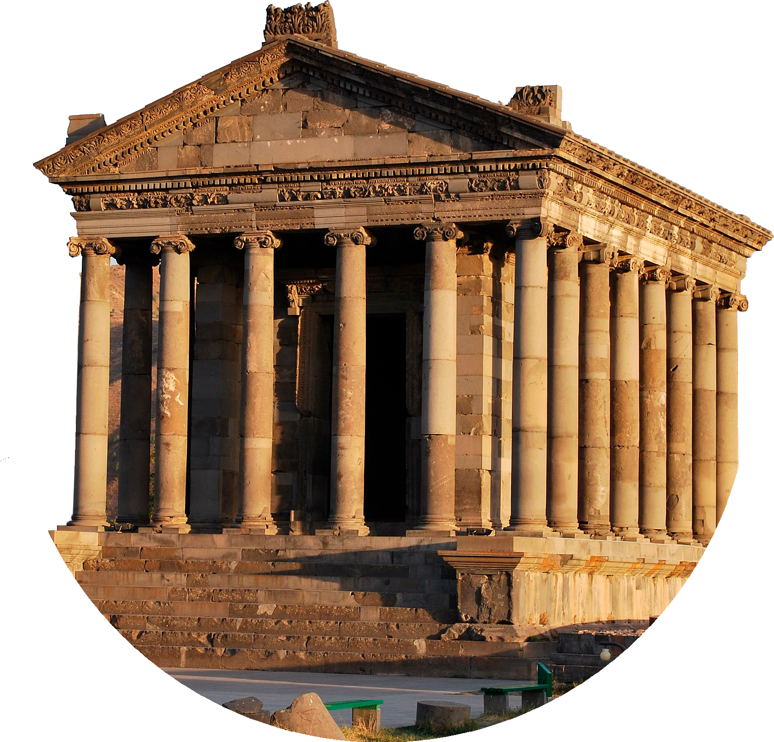 Этот удивительный храм будто был построен в Афинахи сильно отличается от привычной архитектуры Армении. Это единственный храм на Кавказе языческого бога Мирты. Располагается на скальном выступе, с которого вы сможете увить прекрасный вид на ущелье реки Азат.