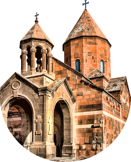 Среди красных скал на Юге Армении располагается удивительный по своей архитектуре монастырский комплекс Нораванк. Центральная церковь разделена на два этажа, первый — символизирует обычную человеческую жизнь, а второй, выполненный из светлого камня — рай.